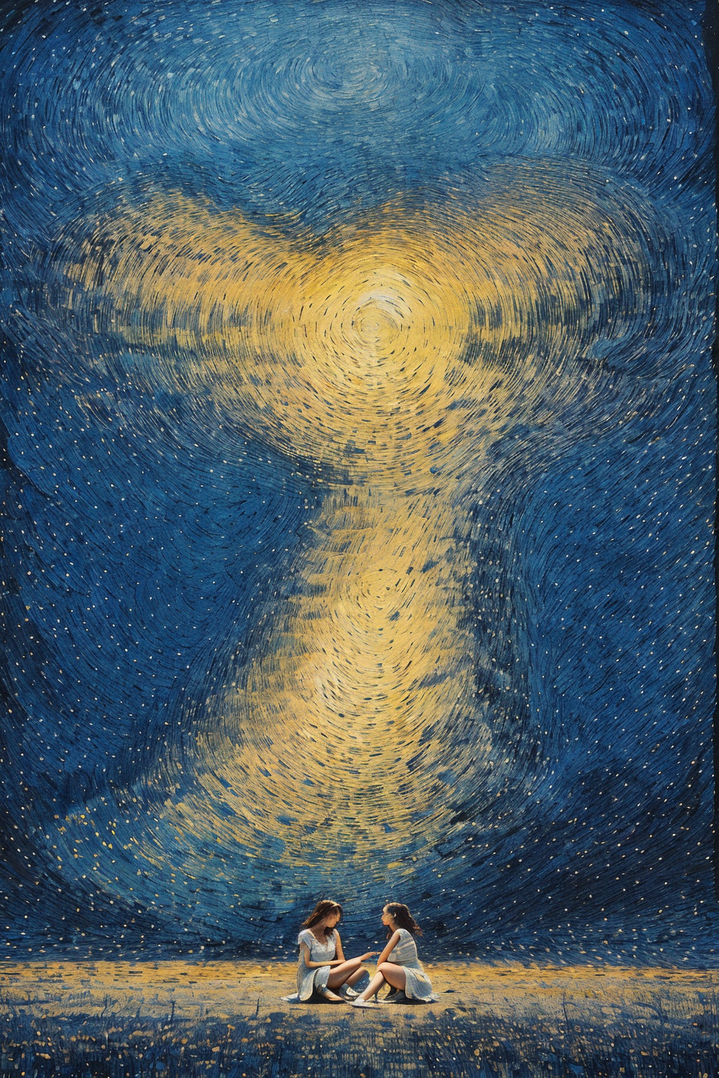 (8k, Best Quality, Masterpiece), Super Detail, (High Detail skin),Pointillism, Van Gogh style, illustration,