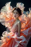 Peach Blossom,1girl\(solo,Eyes\(big eyes,Deep amber,bright_pupils,crystal clear,long and delicate eyelashes\),Nose\(Elevated,a slightly upturned nose tip\),Lips\(Rosy color,defined lip line\),Hairstyle\(Black hair,smooth and shiny,slightly wavy at the ends\),Skin\(Fair,blemish-free,as delicate as porcelain\),Clothing\((flowing and colorful long skirt,shimmering skirt,silver crown,gold necklace and bracelet,gorgeous accessories):1.5,Fabric\(Lightweight silk,smooth and shiny\),(standing in peach blossoms_branch,look at viewer,floating hair,outdoor,cowboy_shot):1.53\), Background\((full moon,peach blossoms_branch,grassland,lake):1.5,sky\), masterpiece,best quality,unreal engine 5 rendering,movie light,movie lens,movie special effects,detailed details,HDR,UHD,8K,CG wallpaper,