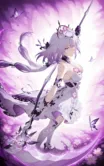 dress,white dress,gloves,purple hair,strapless,multicolored hair,strapless dress,thighhighs,high heels,bow tie safety pants,Depth of field,light particles,lens flare,(artist: quasarcake:0.8),extreme aesthetic,(warp:0.6),wanke,rella,wanke,masterpiece,best quality,good quality,new,year 2024,year 2023,very aesthetic,absurdres,Visual force,Electromotive perspective composition,A shot with HD,ultra K-high,quality masterpiece resolution,emotionalization masterpiece,unconventional supreme,masterful details,with a high-end texture,in the style of fashion photography,(Visual impact:1.2),giving the poster a dynamic and visually striking appearance,impactful picture,official art,colorful,splash of color,movie perspective,masterpiece,best quality,amazing quality,very aesthetic,absurdres,best quality,new,best quality,1girl,solo,(cowboy_shot:1.4),(close-up:1.2),looking at viewer,dynamic angle,(solo focus:1.2),(face focus:1.3),(eyes focus:1.4),wallpaper,incredibly absurdres,depth_of_field,blurry foreground,looking_at_viewer,gradient eyes,bishoujo,white hair,gradient hair,purple hair,purple eyes,pupils,butterfly,bandage,flowers,bare shoulders,holding a scythe,standing,indifferent,flying butterflies,purple flowers,beautiful,glowing flowers and butterflies,day,rain,cathedral,flowers,grass,graceful posture,