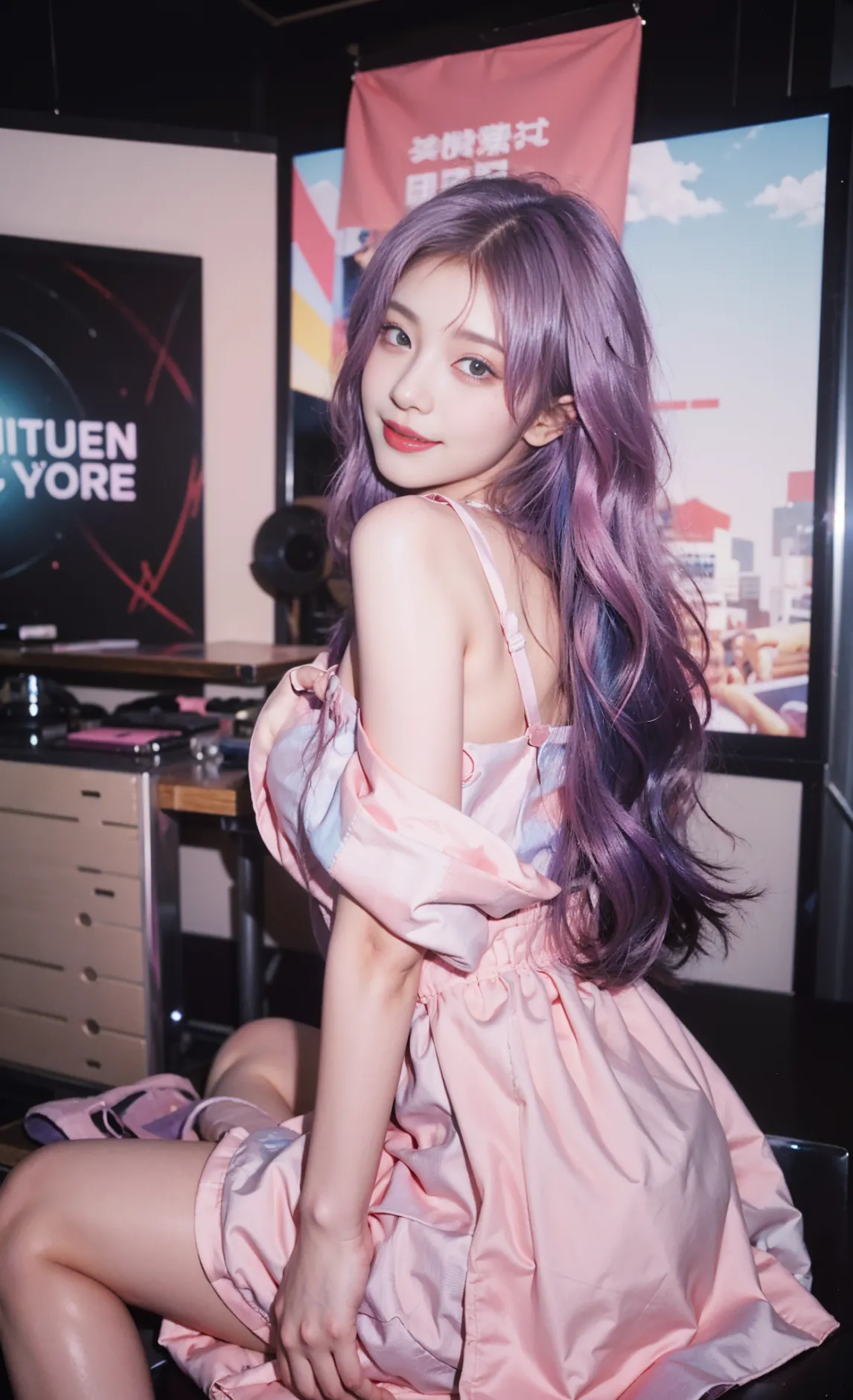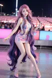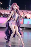 fluffy hair,long floating hair,(super long hair),shiny pink hair,shiny hair,1 girl,alone,long hair,blue eyes,(pink hair),pink hair,looking at the audience,smiling,make-up face prints,purple hair,colored hair,thighs,outdoors,full body ((masterpiece)),(((best quality))),((ultra-detailed)),((illustration)),A lot of waving glow sticks,Stage,Concert,(solo),1 girl,((singing)),headset,(leaning_forward:1.2),(arms_behind_back),((extremely_detailed_eyes_and_face)),colorful,Tokyo Dome,ray tracing,(disheveled hair),cherry_blossoms,petals,Flying notes,4k,8k,fine detail,Ultra high resolution,best quality,HD,intricate detail,large file size,amazing,