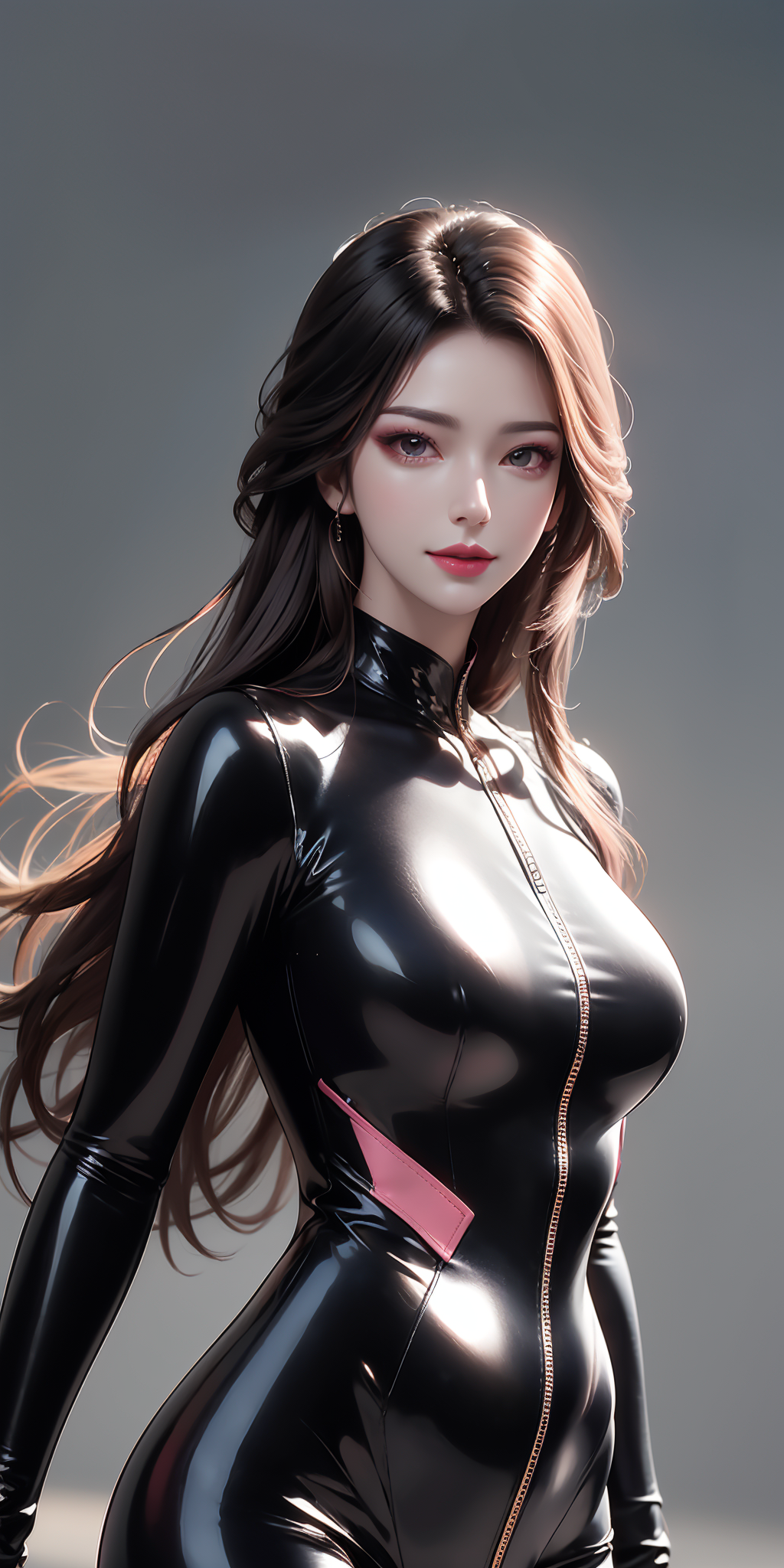 (((standing,black bodysuit,outdoors,grey background))),