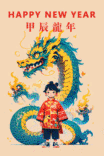 Solo, 1Girl, holding, standing, long hair, (China_dress: 1.2), (green eyes: 1.1), colored candy, black hair, looking at the audience, upper body, (lantern/lamp: 1.1), flowers, Spring Festival, New Year, (fireworks: 1.1), long sleeves, Oriental dragon, white background, red shoes, hair accessories, blue theme, Chinese architectural background