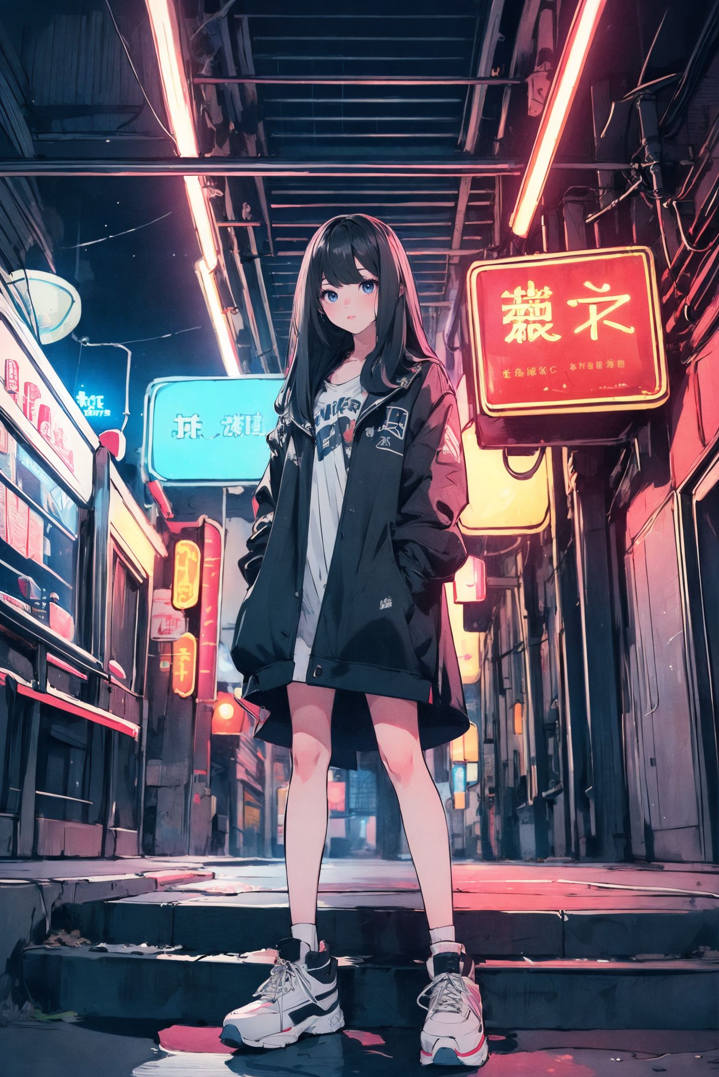 (masterpiece),(topquality),(bestquality),(ultrahighres),1girl,dalcefopainting,absurdlylonghair,neonlights,