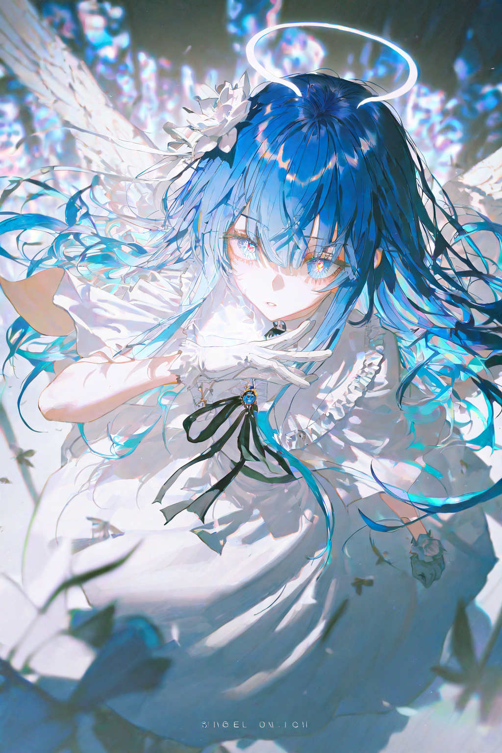 depth of field,(artist:quasarcake:0.8),extreme aesthetic,(wlop:0.6),wanke,rella,wanke,masterpiece,best quality,good quality,newest,year 2024,year 2023,very aesthetic,absurdres,Visual impact,Electromotive force,perspective composition,A shot with tension,ultra-high resolution,32K UHD,sharp focus,best quality,masterpiece,Emotionalization masterpiece,unconventional supreme,masterful details,with a high end texture,in the style of fashion photography,(Visual impact:1.2),giving the poster a dynamic and visually striking appearance,impactful picture,offcial art,colorful,splash of color,movie perspective,masterpiece,best quality,amazing quality,very aesthetic,absurdres,best quality,newest,masterpiece,best quality,good quality,1girl,solo,long hair,looking at viewer,gloves,dress,ribbon,blue hair,flower,frills,wings,white gloves,white dress,bug,butterfly,feathered wings,angel wings,