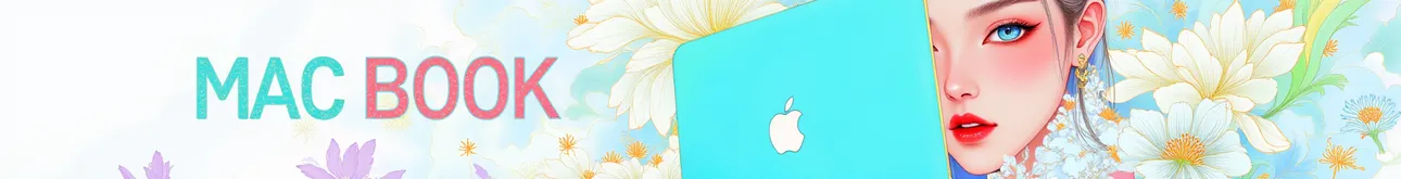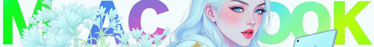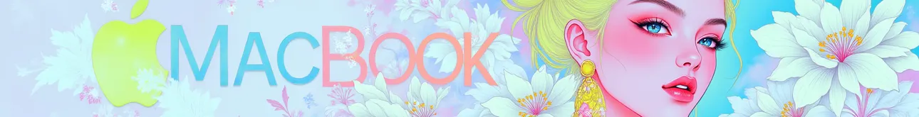 Martin fashion illustration,fluorescent color,Apple logo,text big words 'MAC BOOK',a Mac book with