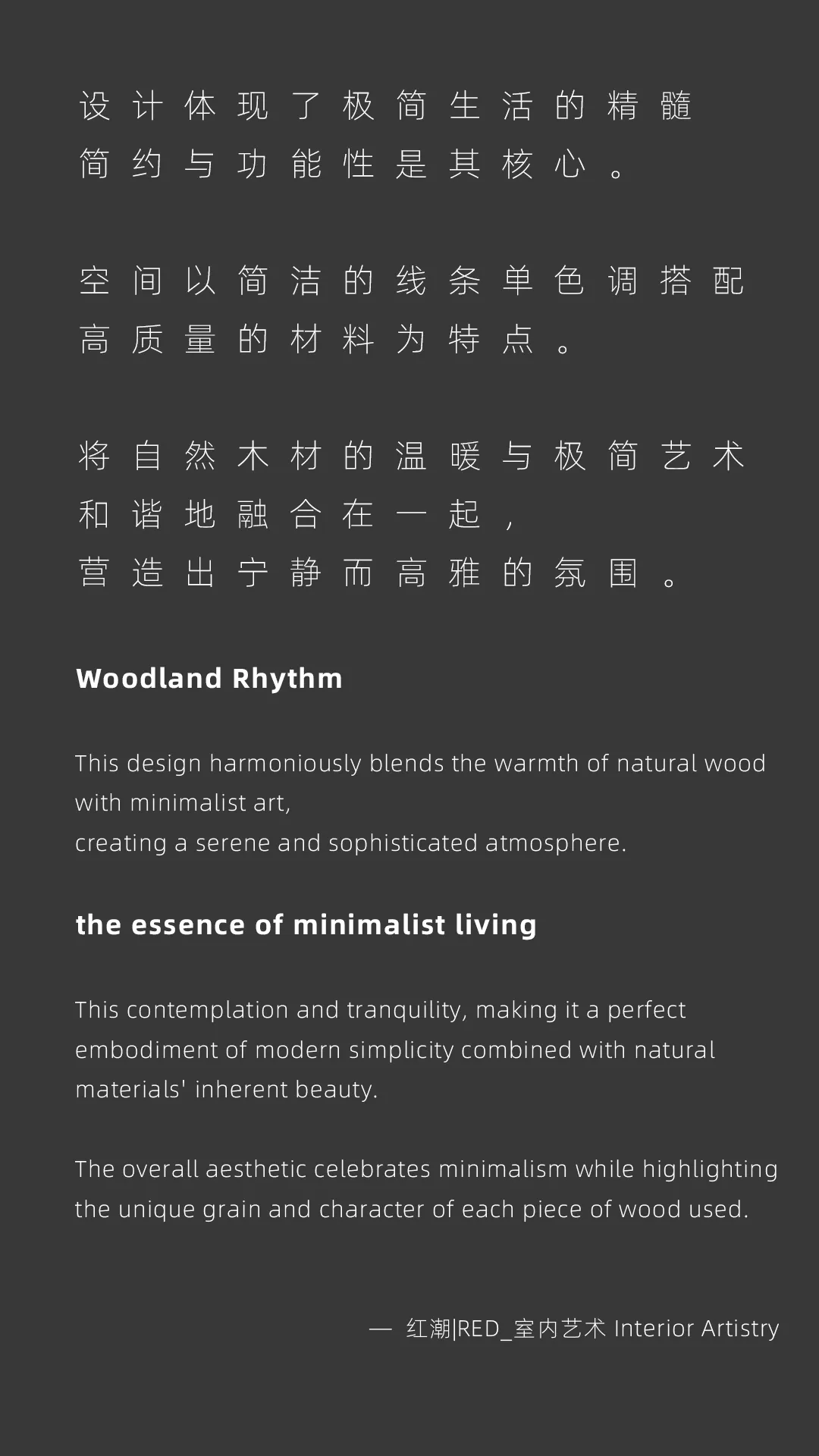 - 这种组合邀请人们沉思和平静,完美体现了现代简约与天然材料固有美的结合。整体美学在庆祝极简主义的同时,突出了每块木材独特的纹理和特性。
