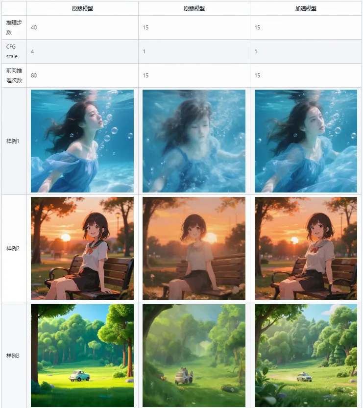 训练框架基于 DiffSynth-Studio 构建,训练数据是由原模型根据 DiffusionDB 中随机抽取的提示词生成的 1.6 万张图,训练程序在 8 * MI308X GPU 上运行了约 1 天。