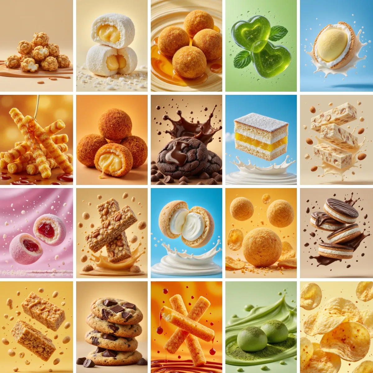 ✅ 真实质感零误差:细节还原度拉满 —— 薯片的凹凸脆纹、坚果的颗粒纹路、蛋糕的绵密气孔、酱汁的挂壁效果,让用户直观感知零食口感