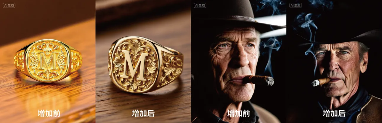 | 产品设计与概念艺术 | 在工业设计、珠宝设计、概念艺术等领域,需要对物体的材质、纹理、反射进行精细呈现。细节增强LoRA可以生成拥有逼真金属质感、皮革纹理、复杂机械结构的图像,为设计过程提供高质量的视觉参考。 |