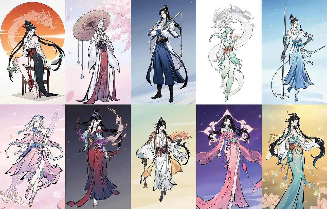 ① 可以快速生成具有国风特色的游戏角色立绘,大大提高角色设计的效率。 了设计师的工作负担,提高了设计效率。