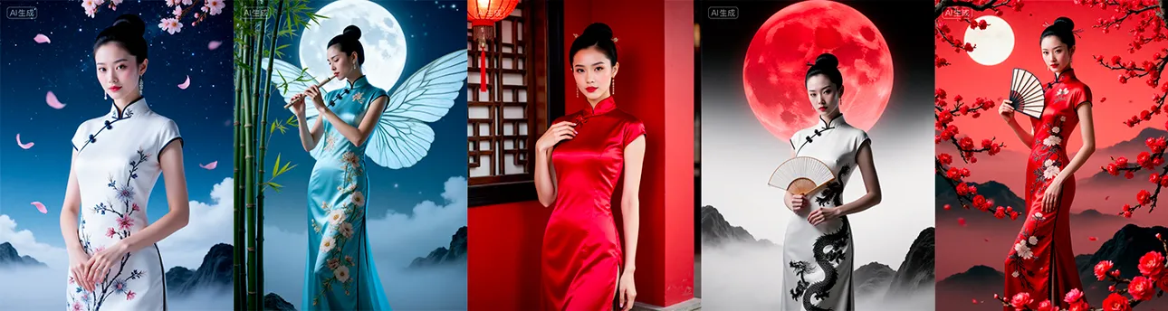 时尚与文化传播:用于旗袍品牌宣传、传统文化推广活动、旅游城市形象海报设计。
