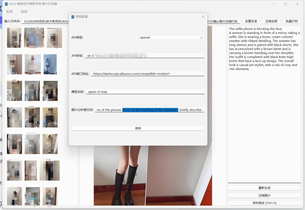 本模型搜集各平台大量真人挡脸自拍照,并使用自研打标程序调用qwen-vl-max模型进行偏重服装搭配描述的打标,我们在幼儿园学过,数据质量是模型质量最大的影响因素,在训练数据这块儿我下了很大功夫。