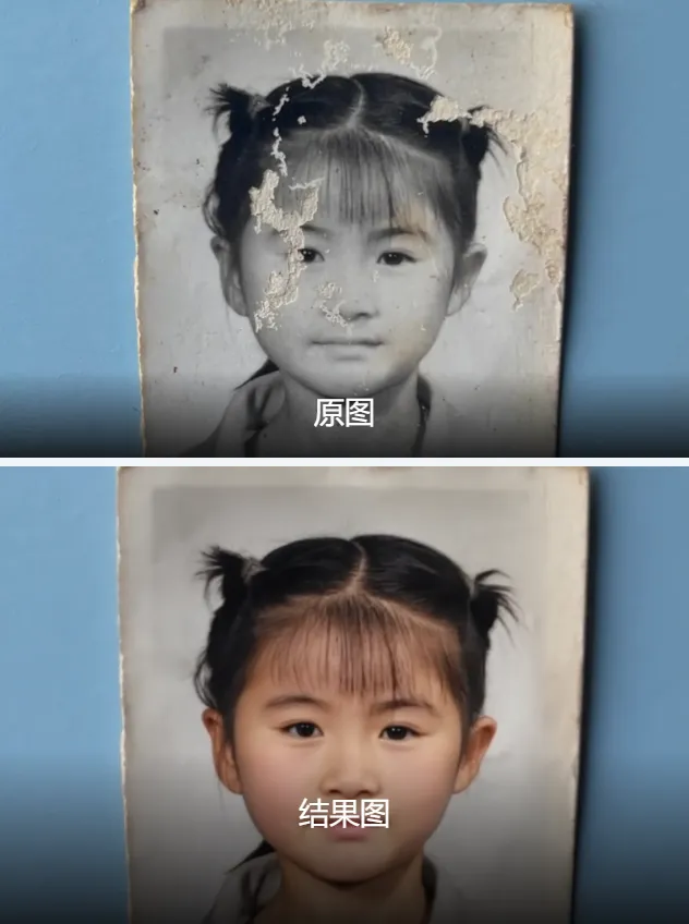 提示词:This photo will be repaired to eliminate cracks, enhance clarity, correct colors, restore the original image, and achieve ultra-high-definition quality.