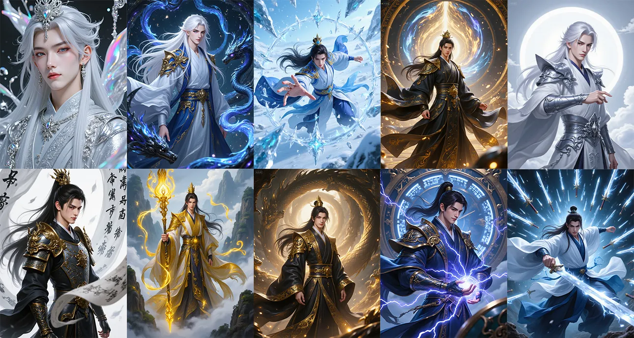 插画与海报创作:生成可直接用于宣传的仙侠男神形象,适用于小说封面、IP衍生品等。