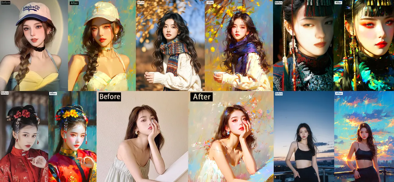 ①用户可以将自己的照片转换成油画风格,用于社交媒体分享、个人博客或网站配图,增加艺术感和趣味性。