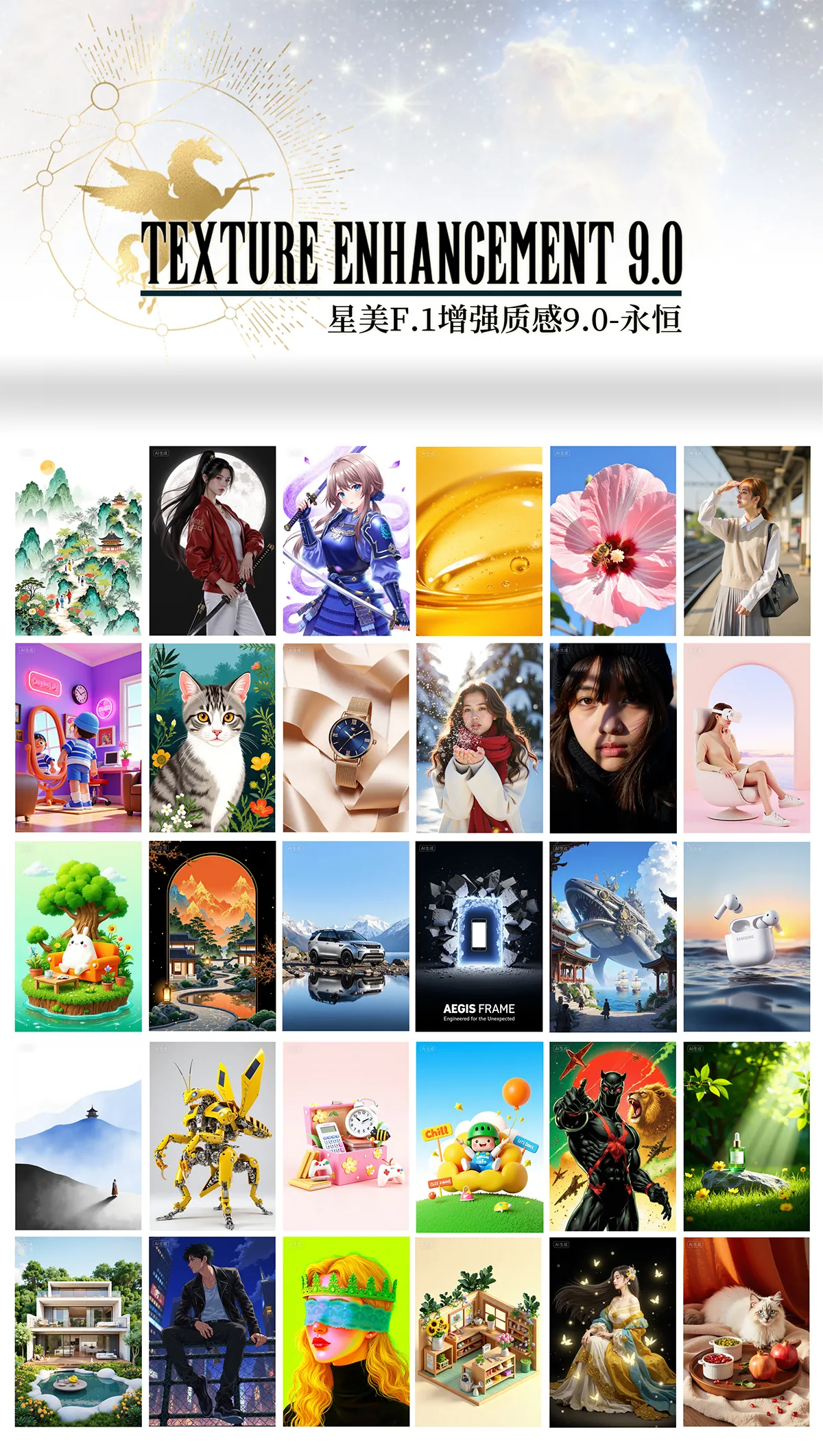 此模型从上线到如今感谢大家一直以来的支持,9.0版本不出意外是质感增强F.1模型最后1个版本的更新,在以往全部版本的数据集和各类返图反馈下决定回归到最精简的性能模式,参考1.0版本筛选最优质的数据集进行最后调试匹配,9.0版本同时做了全方位的优化整合,让lora发挥最广泛的辅助效能, 达到最佳画质,适配多数量lora,主要提升真实清晰度和细节,增加画面元素丰富度,最佳lora模型适配度, 构图呈现方式多样化,直接用于Flux生图或图生图也可用于工作流,也可适用于SD1.5 XL,Gpt5,Kontext,krea,flux-high-res,千问,mjdjourney seedream等大模型图片的二次增强细节质感 (图生图)
