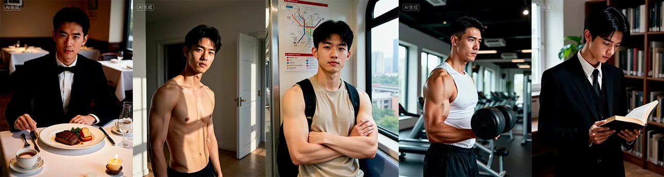 这款LoRA模型专注于气质帅哥写真集风格,擅长生成兼具个性魅力与艺术质感的男性肖像视觉内容。通过对现代男性时尚摄影、光影造型、情绪表达和场景氛围的深度训练,模型能够精准捕捉多样化的男性气质特征,无论是深邃五官、硬朗轮廓、清爽短发,还是西装革履、休闲穿搭、运动户外等风格,都能呈现出自然生动且富有张力的画面效果。
