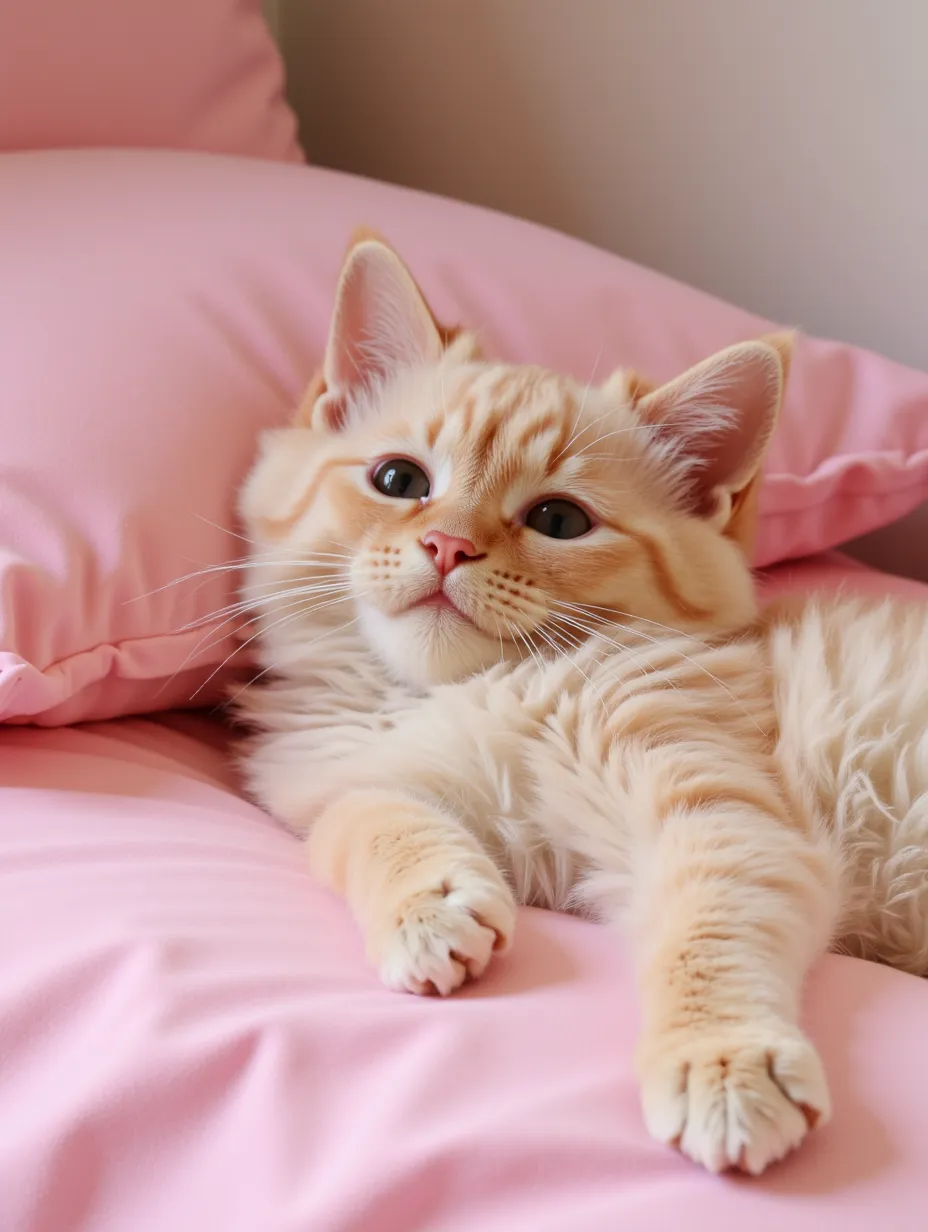 例如:ysh cat,Lying on a pink bed,(效果如文末)
