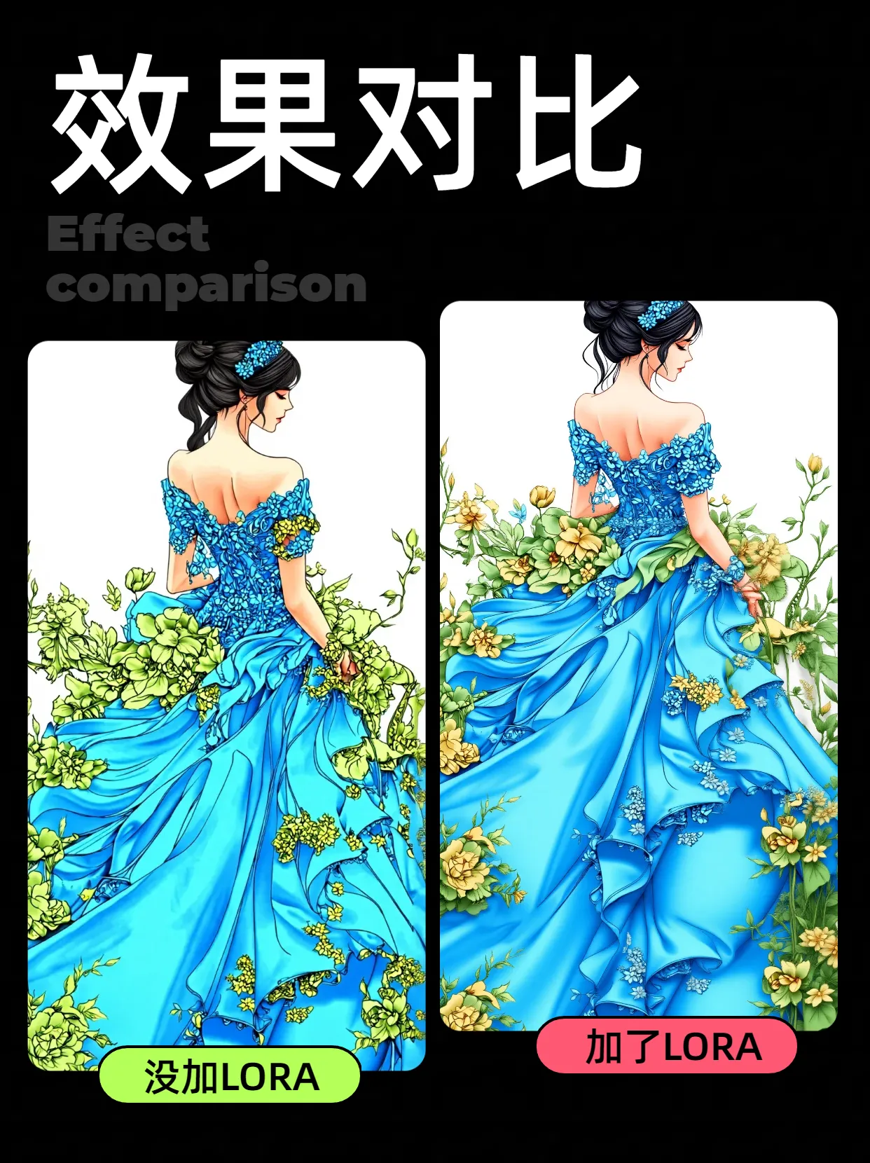 加了LORA,整体色彩会更有层次丰富些 ,生动些,没有那么死板。