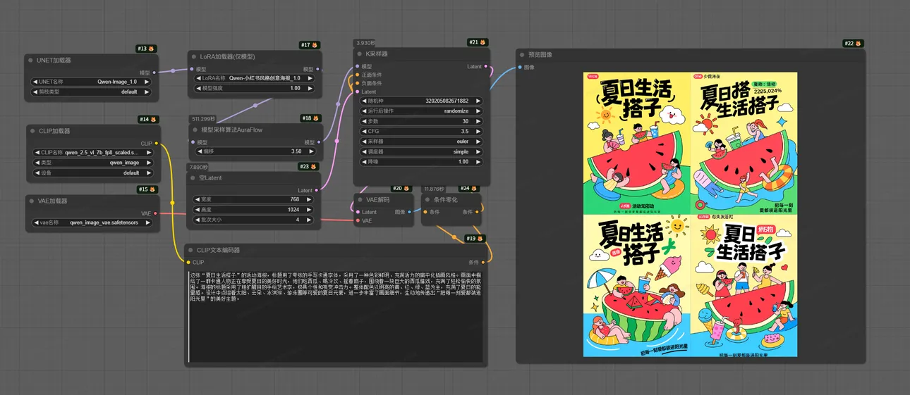 该模型能够快速制作小红书风格的创意海报,能够精准理解中文语义,会根据提示词添加装饰性元素,丰富画面层次,增加趣味性,快速生成极具风格的创意海报;