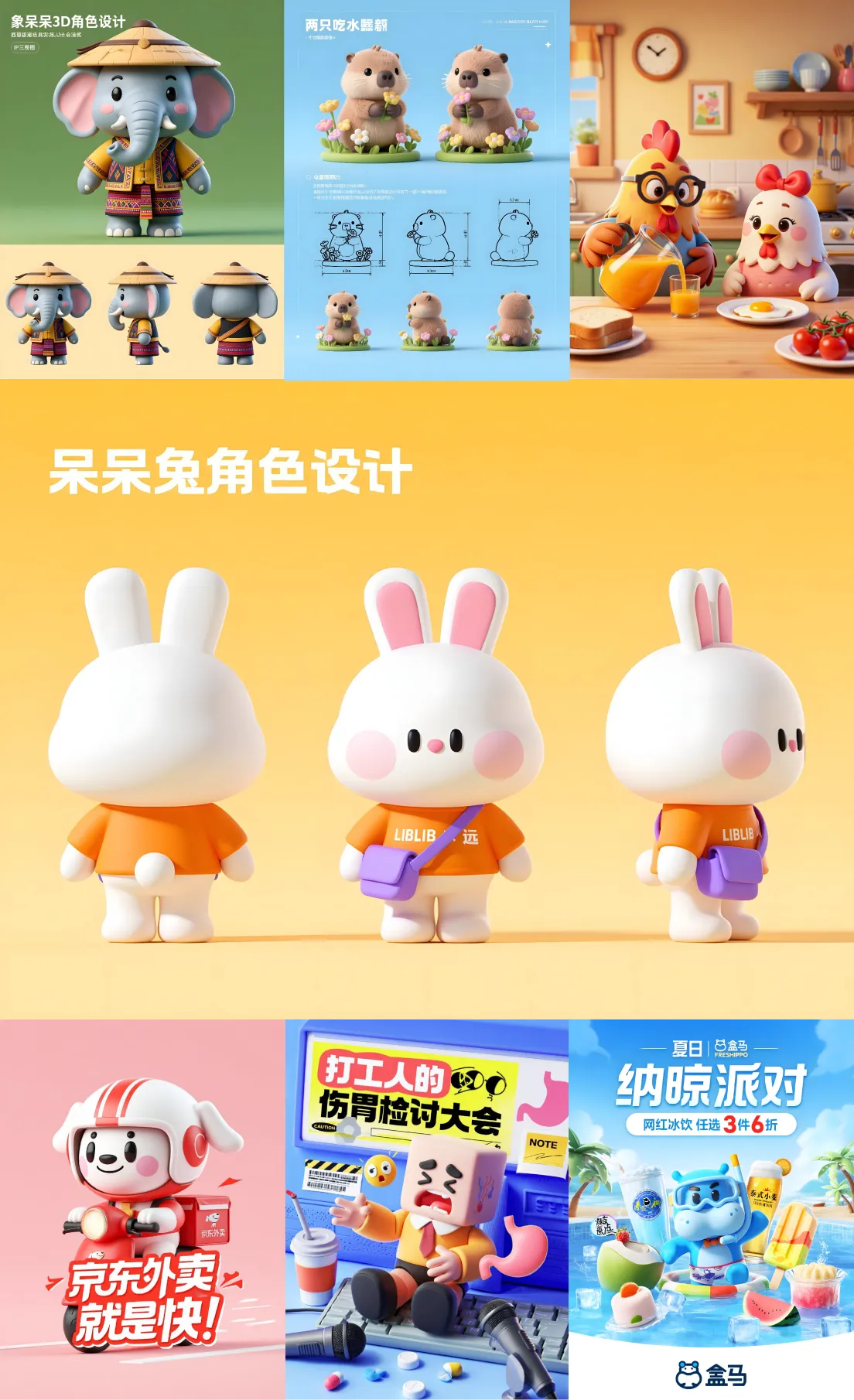提示词建议:3D卡通风格, 标题,人物特征,排版文字,模型由中文自然语音打标,建议使用自然语言描述或使用AI进行润色扩写。